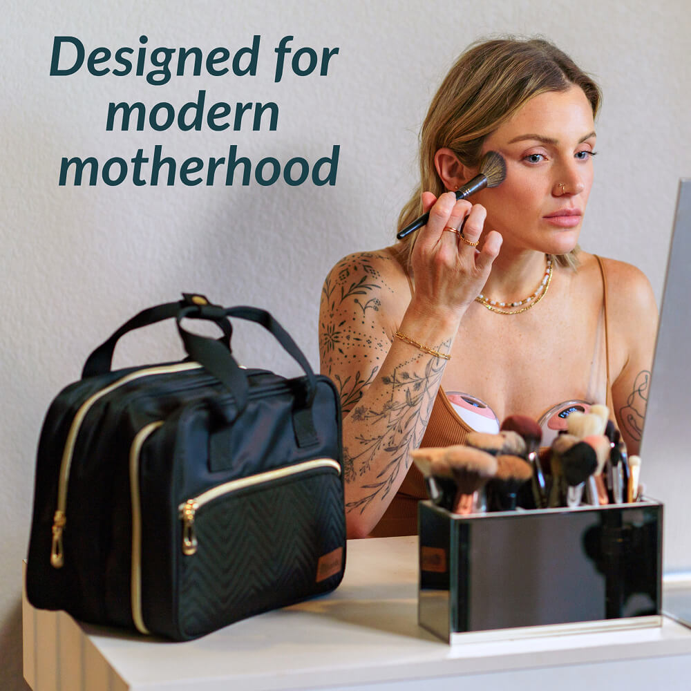 Multiple compartments and pouches keep pumping equipment, milk storage, and accessories neatly arranged and easy to access.