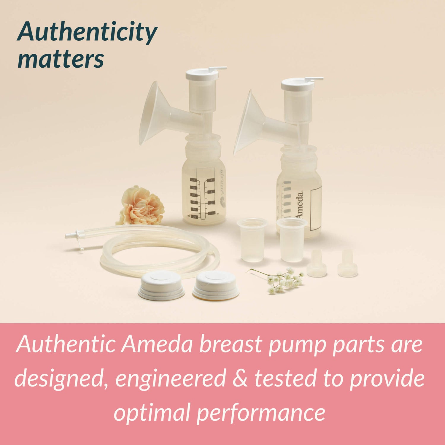 Ameda offers a full line of accessories and spare parts designed to work with your pump. This BPA-free bundle of breast pump parts includes two universal silicone diaphragms and two silicone valves. Extra replacement parts are great to have on-hand to ensure you always have clean items ready or to easily replace worn or damaged parts. All parts that come into contact with breast milk are made without BPA. Authentic Ameda® Spare Parts are engineered, tested, and approved to work specifically with most Ameda Breast Pumps including Pearl®, Platinum, Elite, Mya Joy, Mya Joy PLUS, Finesse, Purely Yours.