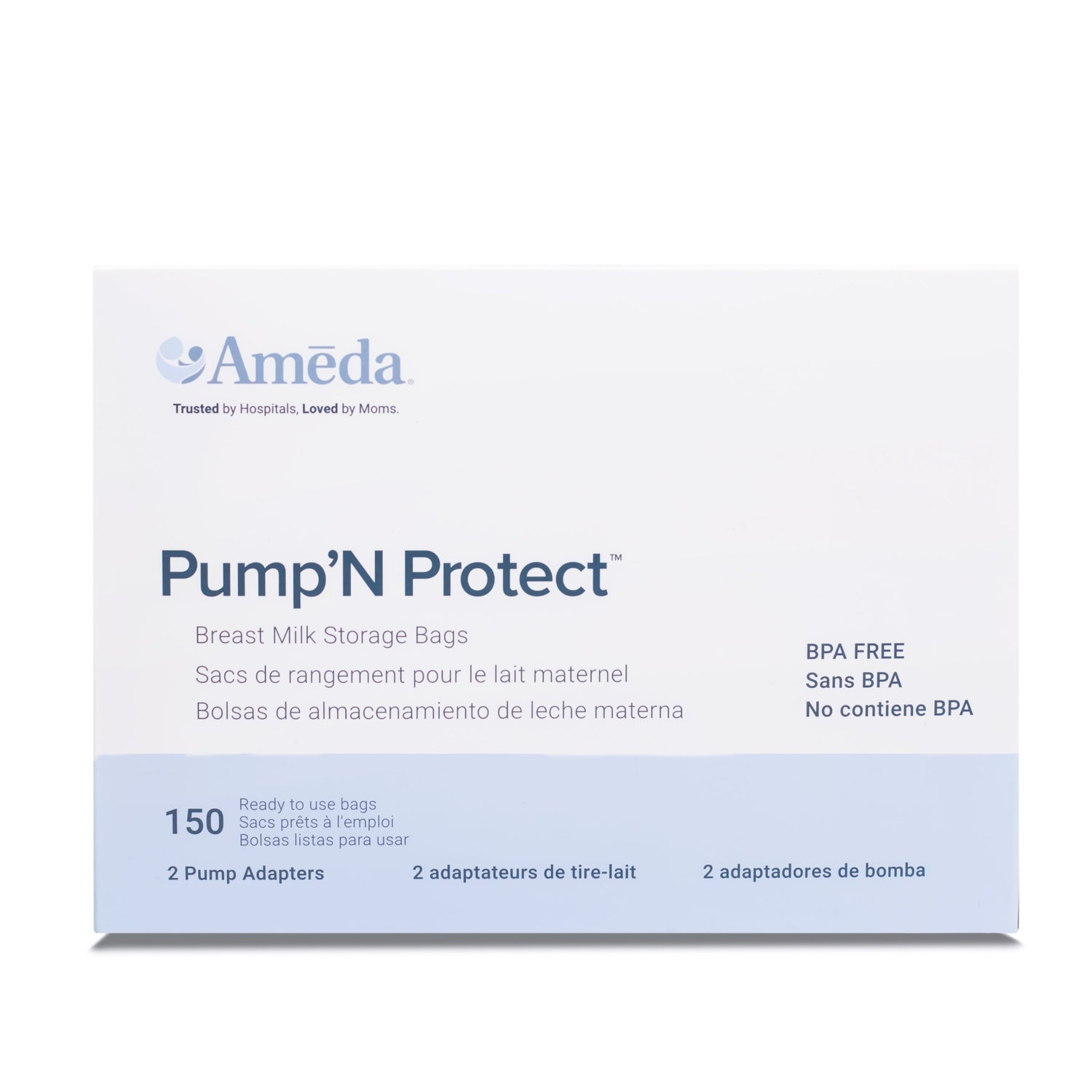 The Ameda Pump ‘N Protect® Breast Milk Storage Bags (50 & 100 count) are a convenient solution for storing precious breast milk. Save time and reduce waste by pumping directly into the bag with easy to use adapters (sold separately). Adapters are available for Ameda standard HygieniKit® systems - item 800X02. These bags are compatible with Ameda HygieniKit Milk Collection System. The double zip seal and reinforced side seams help prevent leakage during storing and transporting. The gusset bottom allows the bag to stand and lay flat during freezing & thawing. The flexible bag allows for easy handling, simply pour from side to transfer milk safely from bag to bottle.